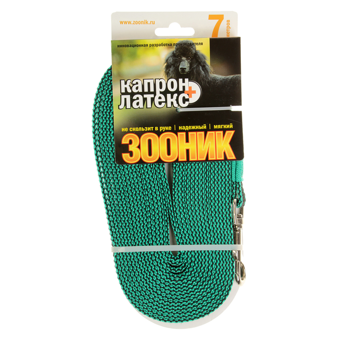 Поводок Зооник капроновый с двойной латексной нитью, зеленый, 7 м х 1,5 см — оригинальная вещица для вашего питомца. Ежедневный уход за вашим любимцем и дрессировка превратятся в удовольствие с нашими товарами. Порадуйте себя или своих знакомых забавной новинкой или подарите её человеку, который давно планировал завести четвероногого друга.