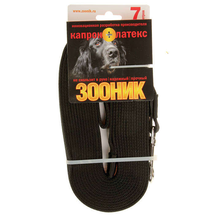 Поводок Зооник капроновый с латексной нитью, 7 м х 2 см, черный