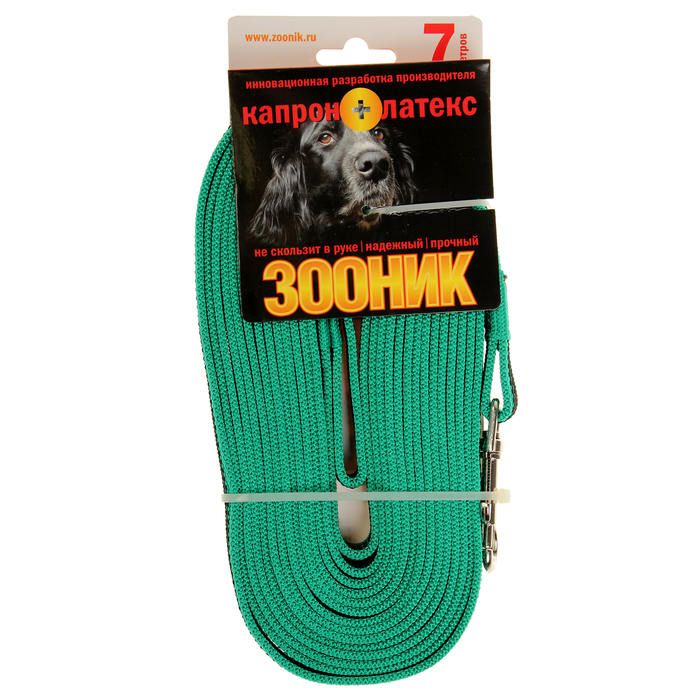 Поводок Зооник капроновый с латексной нитью, 7 м х 2 см, зеленый