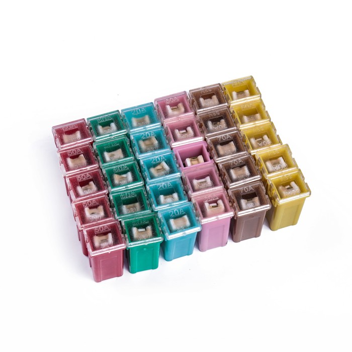 Предохранители автомобильные 12В, тип картридж, 20-70 А, набор 30 шт