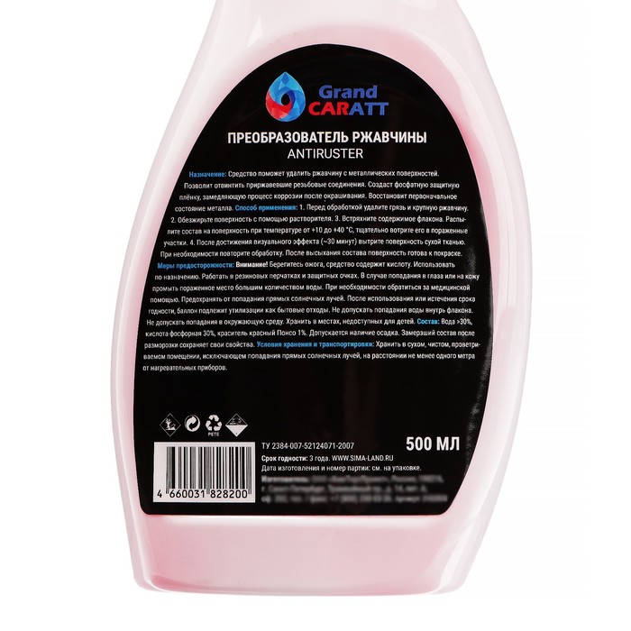 Не секрет, что машина давно уже перестала восприниматься как просто средство передвижения, и водители покупают всё лучшее для своих железных коней. Преобразователь ржавчины Caratt, 500 мл, триггер — идеальный выбор, если вы ставите целью и улучшение технических характеристик, и поддержание внешнего вида автомобиля.