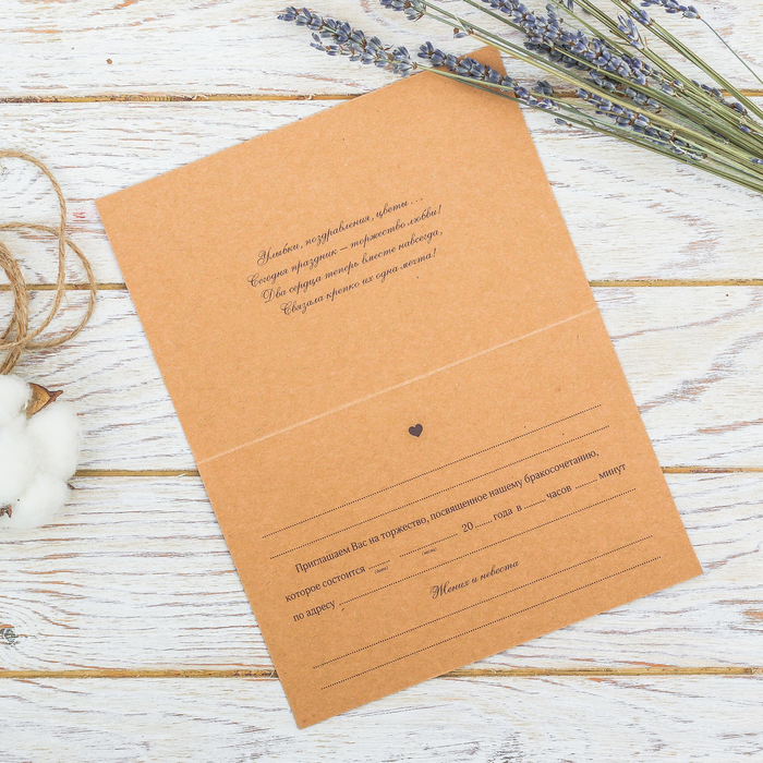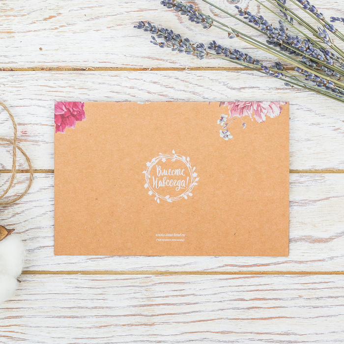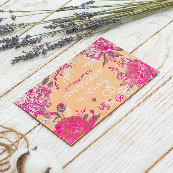 Приглашение на свадьбу крафт "Цветочное", 16 х 10,5 см