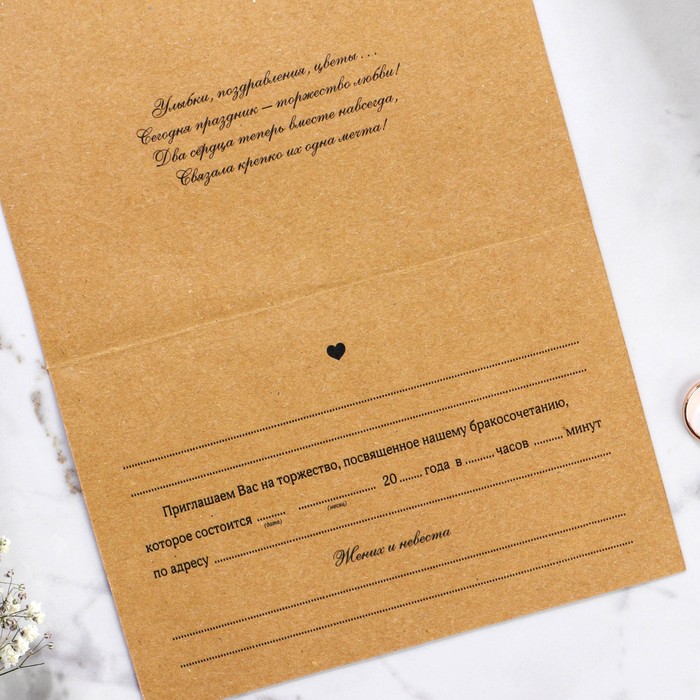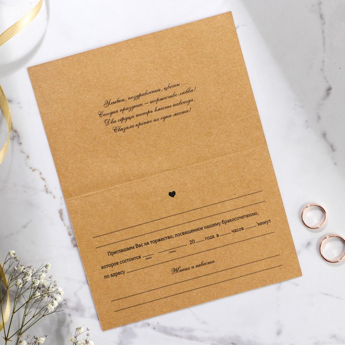 Приглашение на свадьбу крафт "Обручальное", 16 х 10,5 см