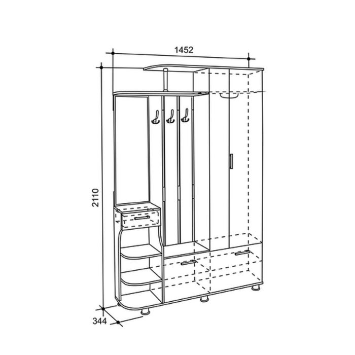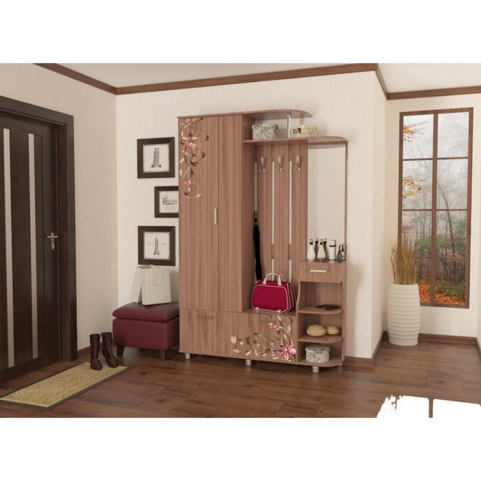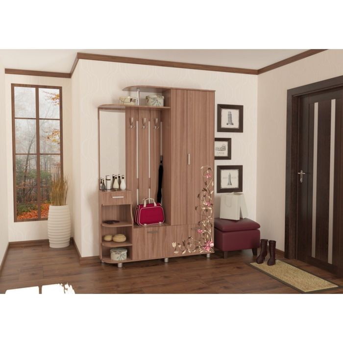 Прихожая — это небольшая комната, которая является лицом всей квартиры. Здесь мы встречаем и провожаем гостей, собираемся на работу. Многофункциональный и стильный модуль «Барселона-2» не займёт много места, при этом в нём есть все необходимые элементы: шкаф с выдвижной штангой, вешалка с крючками для одежды и сумок, обувница, полки, зеркало, ящик. Сборка универсальная.