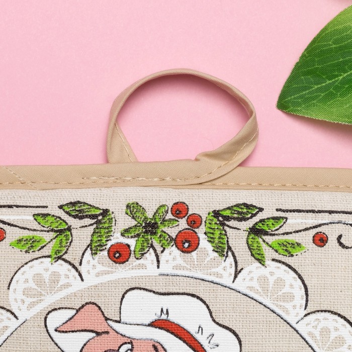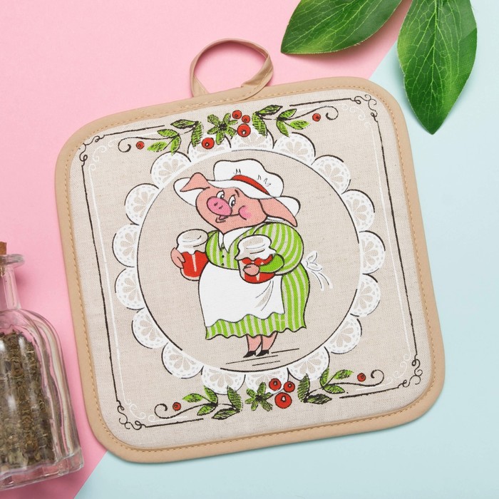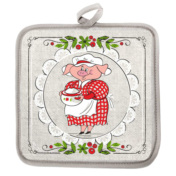 Прихватка полулён "Хрюшки бабушки" 18х18 см,160 г/м2, 50% лён,50% хлопок, шелкография