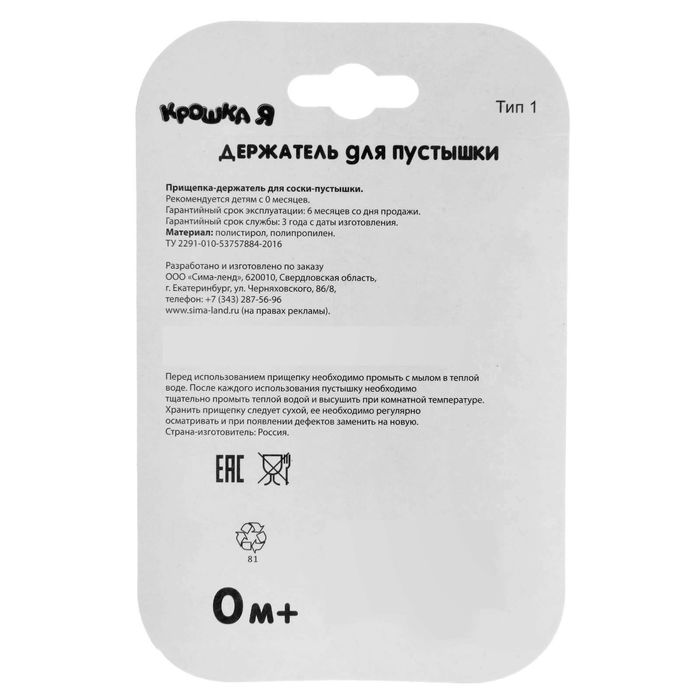 Изделие фиксируется на одежде ребёнка. На конце цепочки есть карабин, который зацепляется за кольцо пустышки. Надёжное крепление убережёт вещь от падения на пол, если малютка случайно выронит её изо рта.