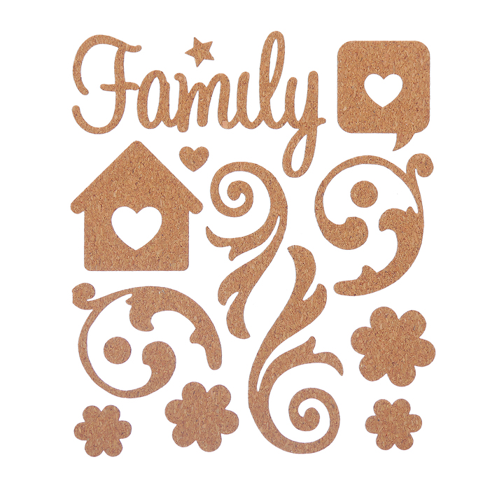 Пробковые стикеры для декора "Семья" набор 17 элементов (7921)
