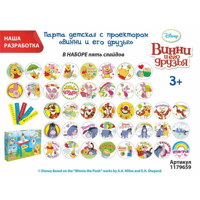 Проектор с партой и 5 кассетами со слайдами "Винни и его друзья", с аксессуарами, Медвежонок Винни и его друзья, +БОНУС