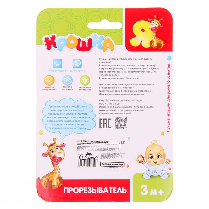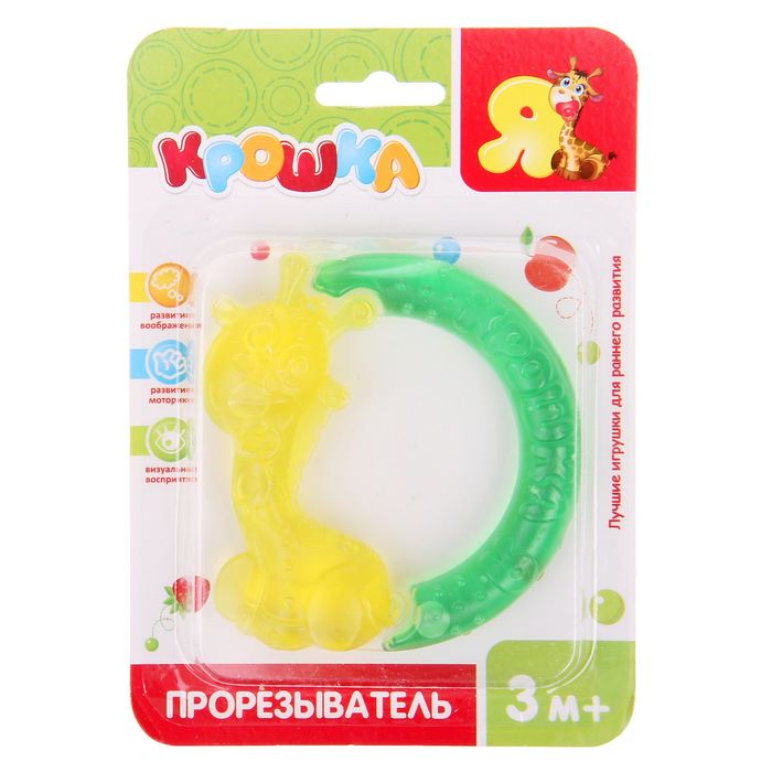 Прорезыватель «Жирафик» — незаменимый помощник при режущихся зубках! Вода внутри модели создаёт охлаждающий эффект, снимающий болевые ощущения малютки и снижающий воспаление в ротовой полости. Форма и размеры игрушки рассчитаны специально для детской ручки — её очень удобно держать. Рельефная фигурка забавного животного будет способствовать развитию мелкой моторики крохи.
