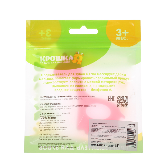 Прорезыватель снимает неприятные ощущения у малыша в период появления первых зубов. Также изделие подготовит ребёнка к процессу жевания, поспособствует формированию правильного прикуса и развитию мелкой моторики рук.