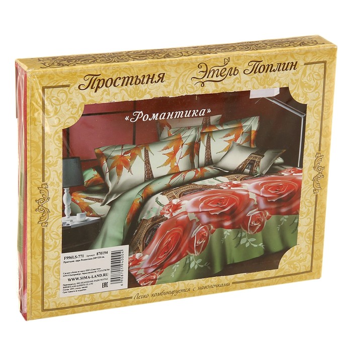 Простыня "Этель поплин" 1.5 сп Романтика 150*210 см, 100% хлопок, поплин