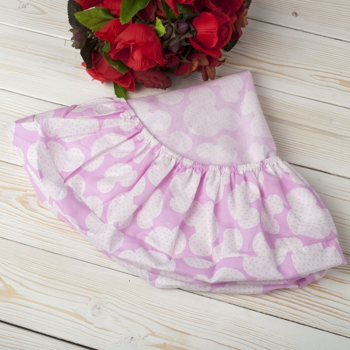 Простыня на резинке круглая, размер 75×75×12 см, мышонок розовый, бязь