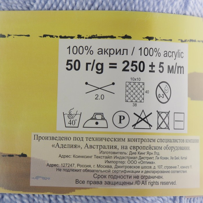 Пряжа "Adelia Aura" 100% акрил 250м/50гр (080 св.голубой)