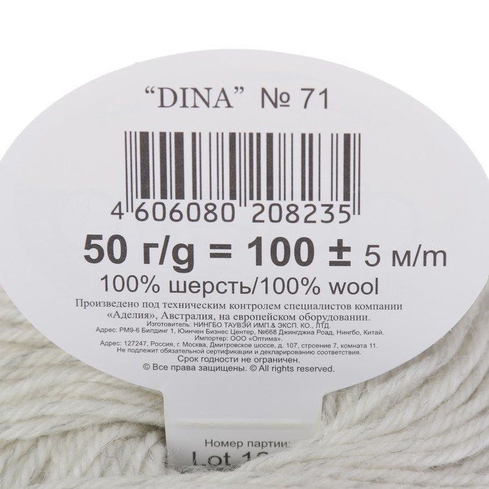 Пряжа "Adelia Dina" 100% шерсть 100м/50гр (71 белый)