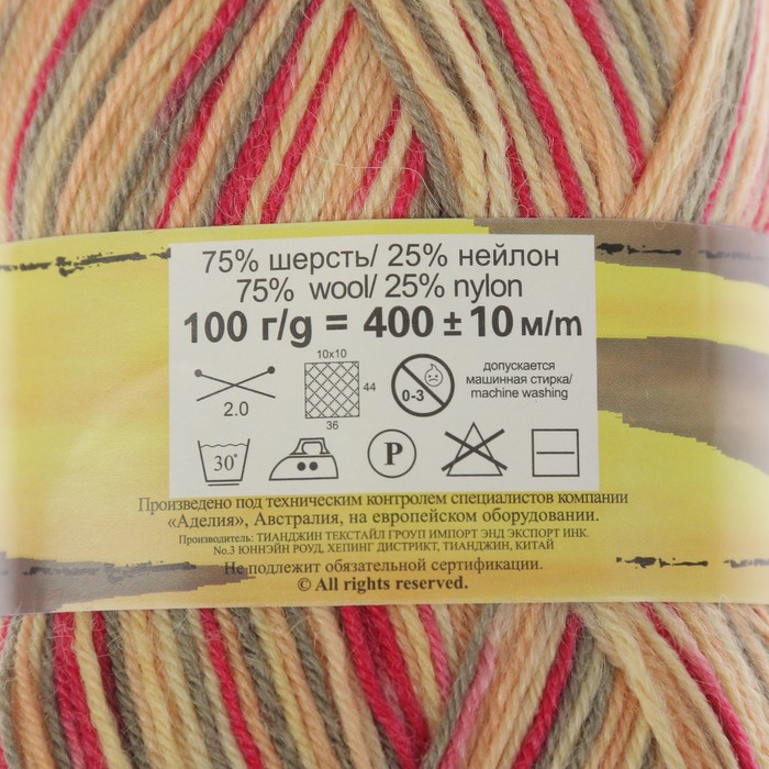 Пряжа "Adelia Jake" 75% шерсть, 25% нейлон 400м/100гр (15 желт/красный/оливковый)