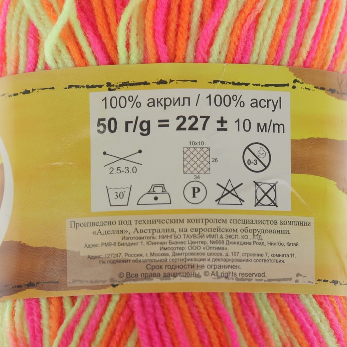 Пряжа "Adelia Jane" 100% акрил 227м/50гр (16 яр. жёлтый-яр. оранж-яр.роз)