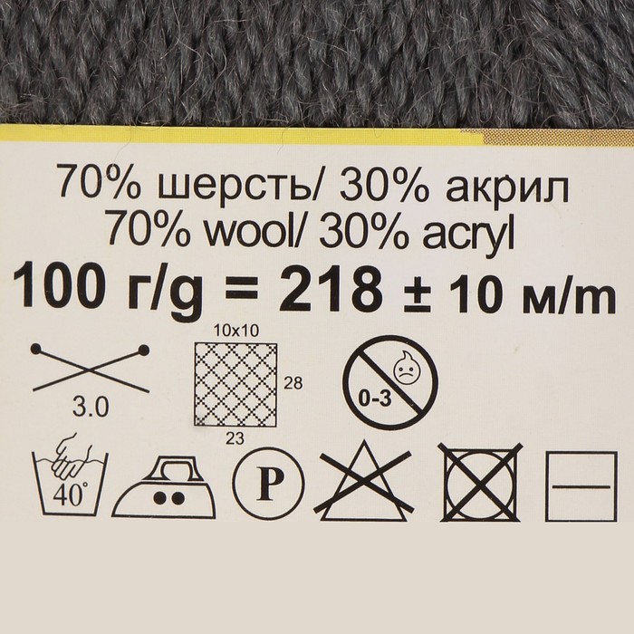 Пряжа "Adelia Lucas" 70% шерсть, 30% акрил 218м/100гр (22 т.серый)