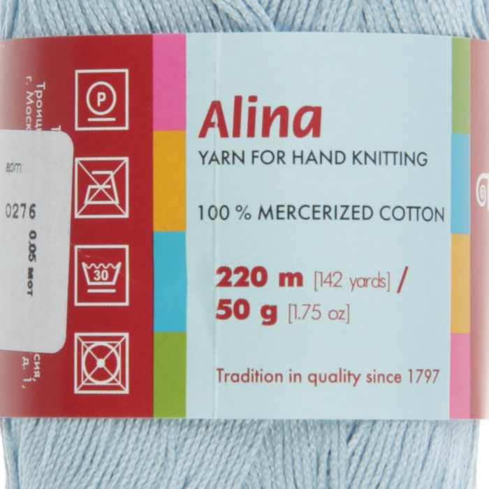 Пряжа "Алина" 100% мерсеризованный хлопок 220м/50гр (0276, бледно-голубой)