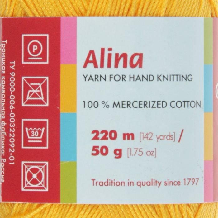 Пряжа "Алина" 100% мерсеризованный хлопок 220м/50гр (0690, шафран