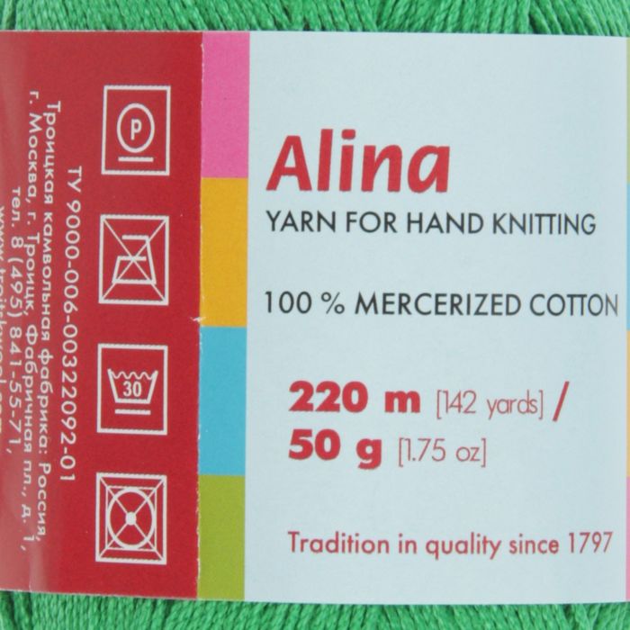Пряжа "Алина" 100% мерсеризованный хлопок 220м/50гр (0723, яркая зелень)