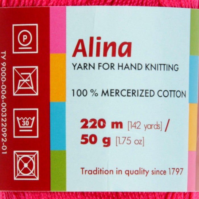 Пряжа "Алина" 100% мерсеризованный хлопок 220м/50гр (1014, мальва)