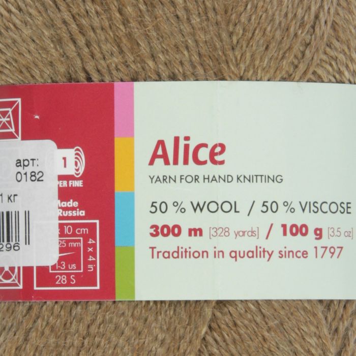 Пряжа "Алиса" 50% шерсть, 50% вискоза 300м/100гр (0182, тёмный песок)