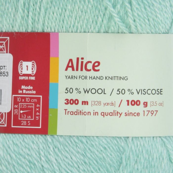 Пряжа "Алиса" 50% шерсть, 50% вискоза 300м/100гр (3853, мята)