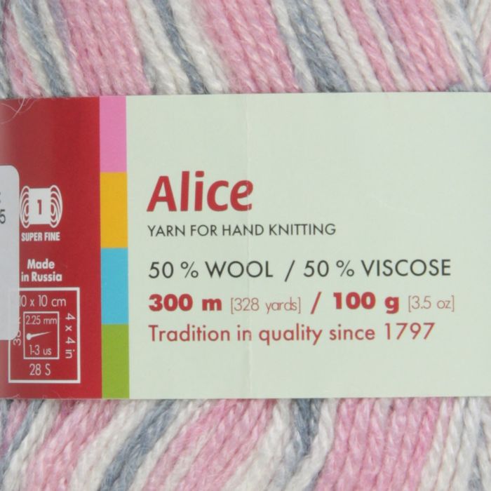 Пряжа "Алиса" 50% шерсть, 50% вискоза 300м/100гр (7285, принт)