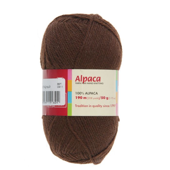 Пряжа "Альпака" 100% альпака 190м/50гр (0411, шоколадный)