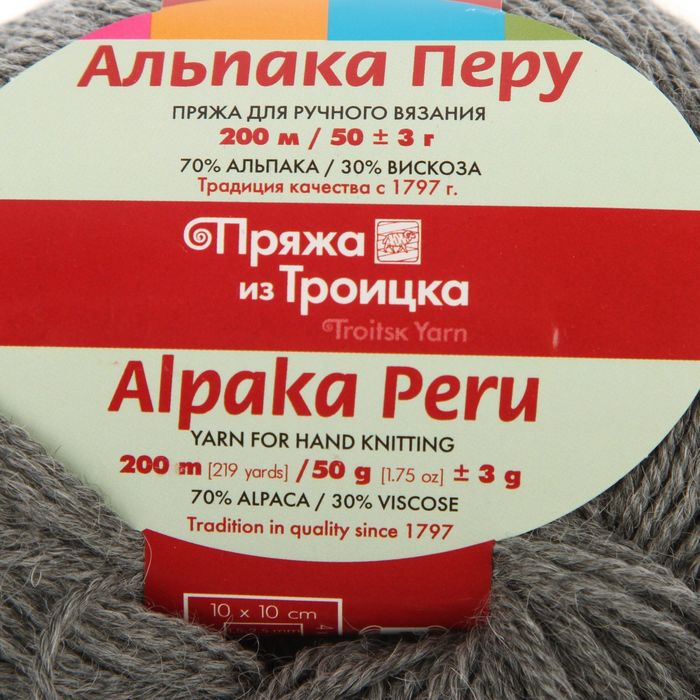Пряжа "Альпака Перу" 70% альпака, 30% вискоза 200м/50гр (темно-серый))
