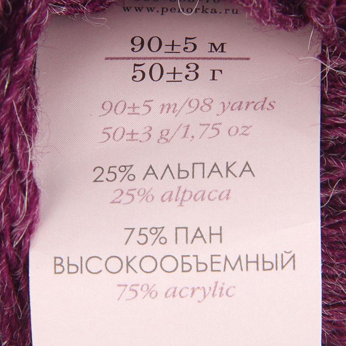 Пряжа "Альпака шикарная" 25% альпака, 75% акрил объёмный 90м/50гр (191-Ежевика) в виде мягкой воздушной ниточки, станет замечательным сырьём для создания тёплой кофточки, шапки, шарфа, джемпера или кардигана. Рукодельницы ценят такое волокно, ведь оно прекрасно вяжется, благодаря чему получается идеально ровный рисунок. После стирки изделие обретёт ещё большую мягкость и «пушистость».