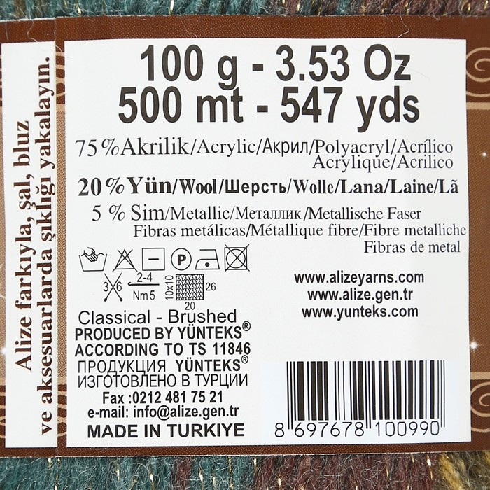 Пряжа "Angora gold simli batik" 20% шерсть,75% акрил, 5% металлик 500м/100гр (3368)