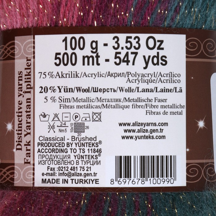 Пряжа "Angora gold simli batik" 20%шерсть,75%акрил, 5%металлик 500м/100гр (4341)