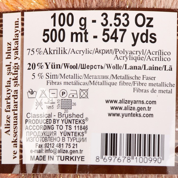 Пряжа "Angora gold simli batik" 20% шерсть, 75% акрил, 5% металлик 500м/100гр (4741)