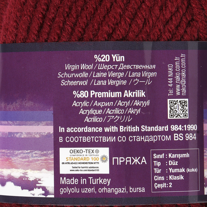Пряжа "Arctic" 40% шерсть, 60% акрил 100м/100гр (6071 бордо)