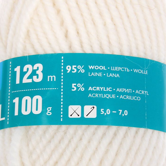Пряжа ArinaWool (АринаЧШ) 95% шерсть, 5% акрил 123м/100гр (964 ультрабелый)