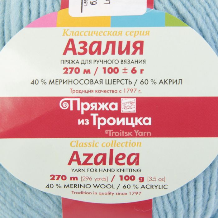 Пряжа "Азалия" 40% мериносовая шерсть, 60% акрил 270м/100гр (0276, бледно- голубой)
