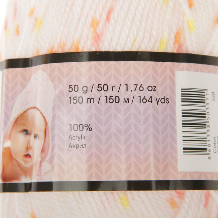 Пряжа "Baby color" 100% акрил 150м/50гр (5103 бел-жел-розовый)