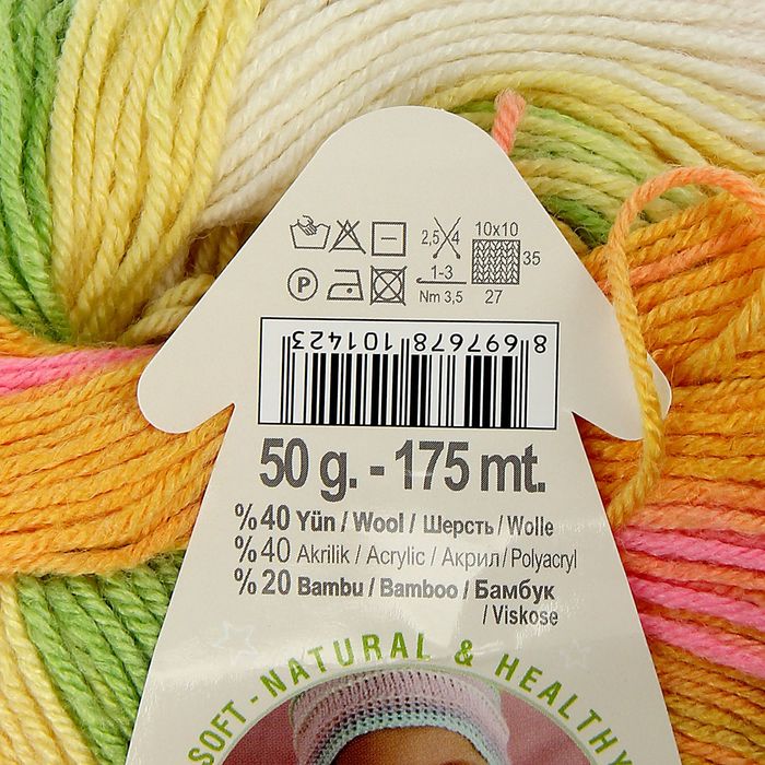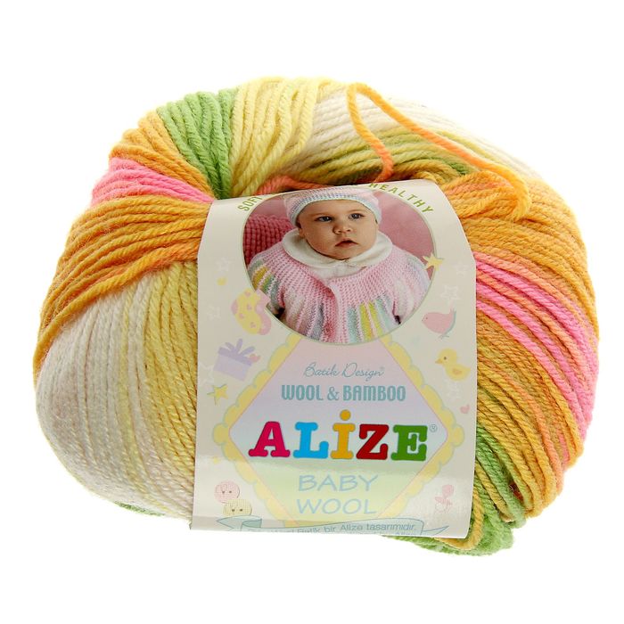 Пряжа "Baby Wool Batik" 40% шерсть, 40% акрил, 20% бамбук 175м/50гр (4390) производится уже 30 лет и зарекомендовала себя только с хорошей стороны. Подходящий для детской кожи состав не вызывает аллергию и обладает антибактериальными свойствами. А за счёт бамбука изделие становится ещё мягче и теплей. Поэтому без сомнений создавайте милые детские вещички, которые не будут колоться, скатываться и терять форму из-за частых стирок. «Батик» – это особая техника росписи по тканям отдельными участками, за счёт этого выгодно будут смотреться пинетки, шапочки, кофточки и другие предметы детского гардероба.
