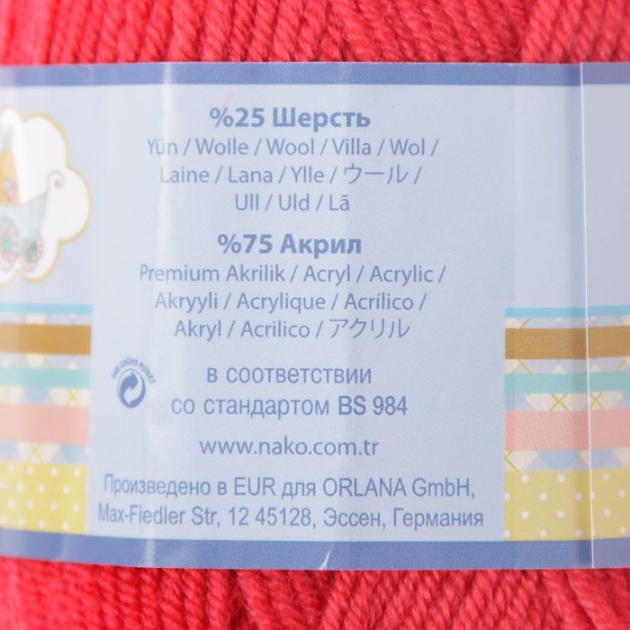 Пряжа "Bambino marvel" 25% шерсть, 75% акрил 130м/50гр (9040 ягодный)