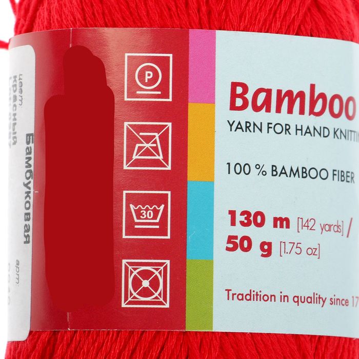 Пряжа "Бамбуковая" 100% бамбук.волокно 130м/50гр (0040, красный)