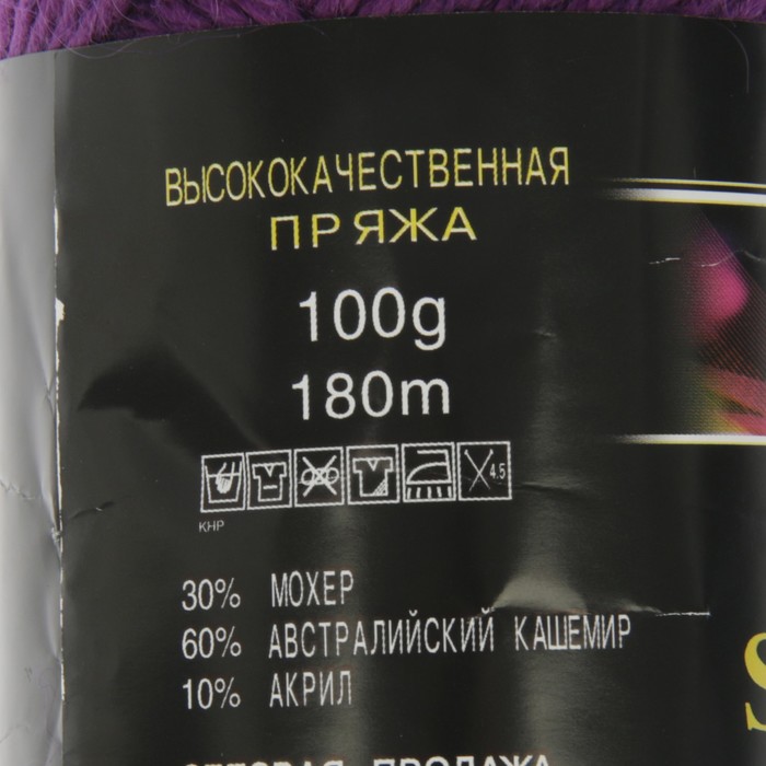 Пряжа "Белый леопард" 60% кашемир, 30% мохер, 10% акрил 180м/100гр (231 фиолетовый)