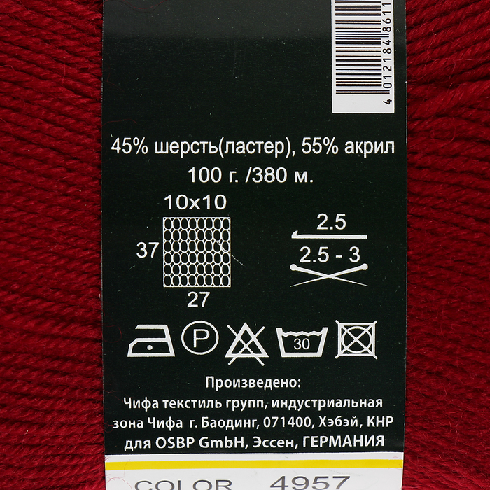 Пряжа "Brilliant" 45% шерсть, 55% акрил 380м/100гр (4957 бордовый)