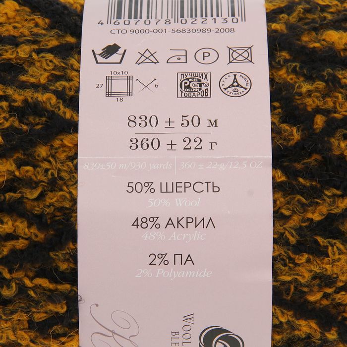 Пряжа букле "Супер фантазийная" 50% шерсть, 48% акрил, 2% полиамид 830м/360гр (634М)