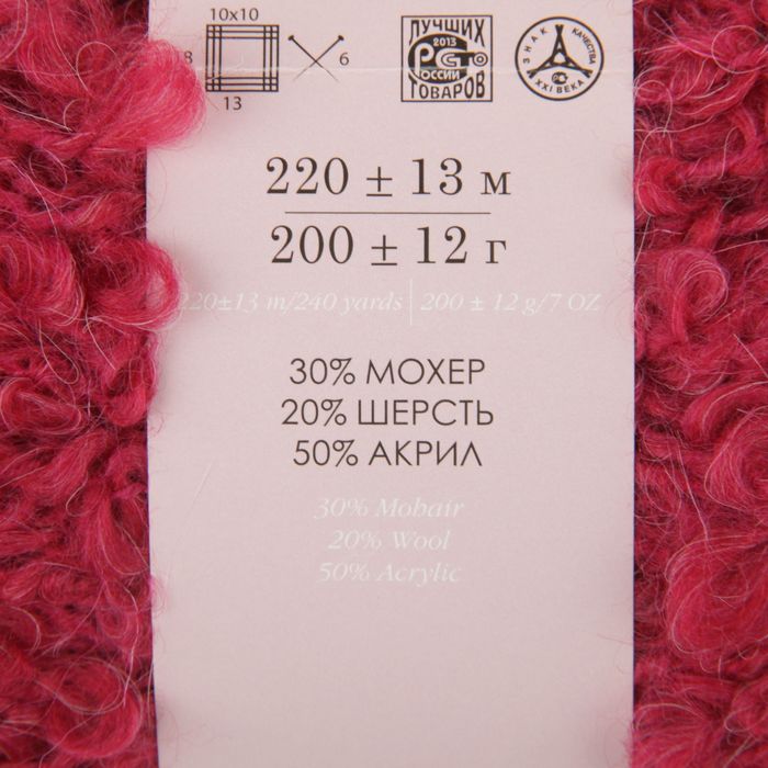 Пряжа "Буклированная" 30% мохер,20% шерсть,50% акрил 220м/200гр (439-Малиновый)