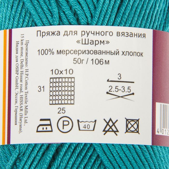 Пряжа "Charm" 100% мерсеризованный хлопок 106м/50гр (4193 морская волна)