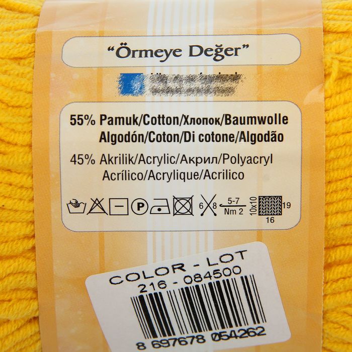 Пряжа "Cotton Gold Plus" 55% хлопок, 45% акрил 200м/100гр (216 цыпленок)