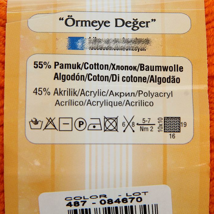 Пряжа "Cotton Gold Plus" 55% хлопок, 45% акрил 200м/100гр (487 оранжевый)
