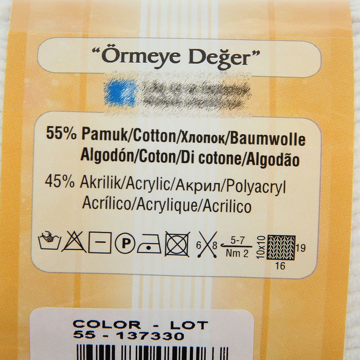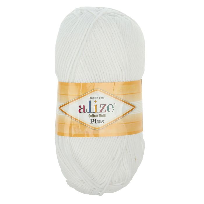 Пряжа "Cotton Gold Plus" 55% хлопок, 45% акрил 200м/100гр (55 белый )