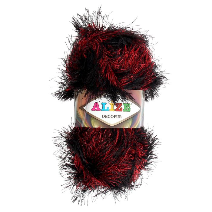 Пряжа "Decofur" 100% полиэстер 110м/100гр (1381 черно-красный)